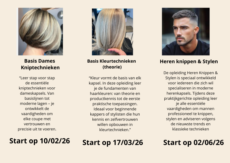 Met persoonlijke begeleiding en veel praktijkervaring zorgen wij ervoor dat jij niet alleen de technieken beheerst, maar ook je eigen stijl ontwikkelt. Zo groei jij uit tot een hairstylist die met passie en zelfvertrouwen elke klant een onvergetelijke look kan geven.